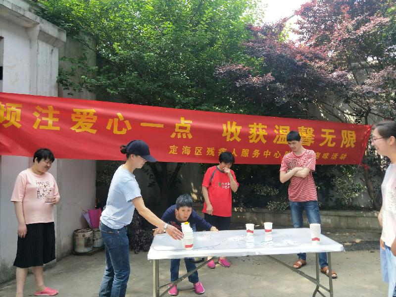 今年5月20日是我国第28个“全国助残日”,5月18日上午,阳光家园服务中心举办了一场“倾注爱心一点? 收获温馨无限”趣味娱乐活动。活动有“闻声击瓶”、“完善脸型”、“助你一臂之力”等项目,欢声笑语洋溢在每个残疾人的脸上。此次趣味活动,不仅丰富了他们的文化生活,同时也提高了他们的精神生活。